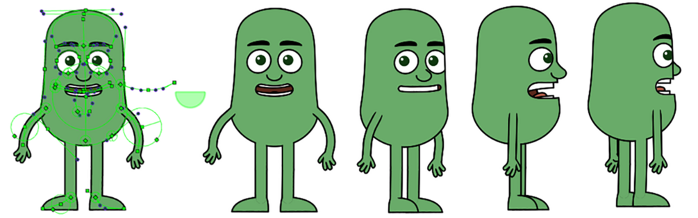 A complete, 100-degree smooth-turn Toon Boom Rig with multiple subs for eyes, and several mouth & hand subs.